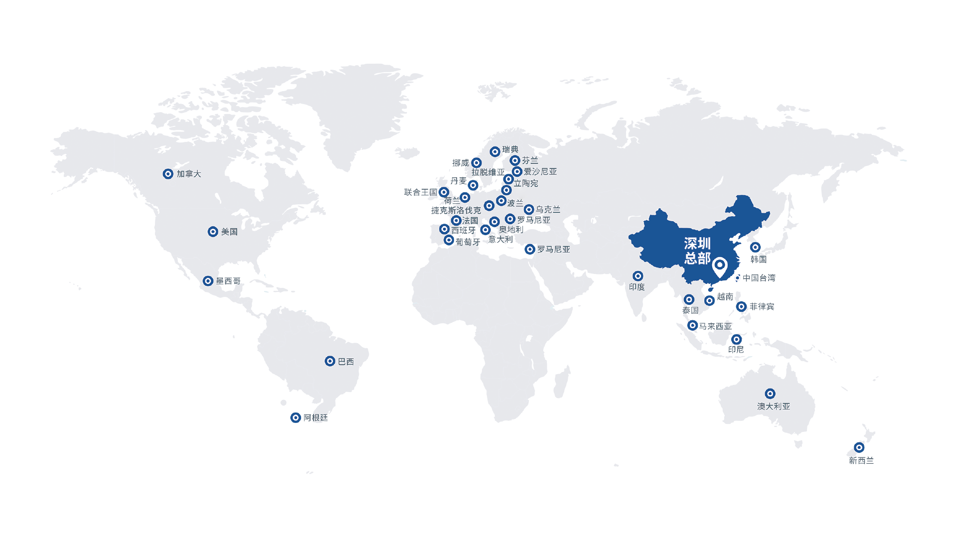 立足于國內深圳、張家港、常州、天津、長沙、蘇州、濟南生產基地與備品備件庫,國內外轄180+辦事處,在100多個國家和地區(qū)設立銷售服務機構,為全球用戶提供高品質的產品與優(yōu)質高效的服務。